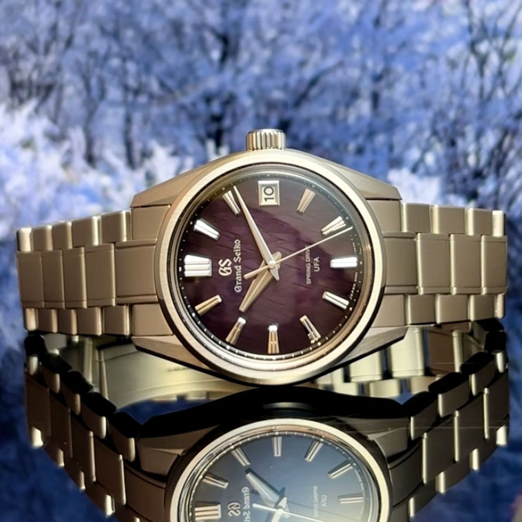 紫を帯びたダイヤルは、信州・霧ヶ峰の樹氷が夜明けを迎える瞬間をイメージ。光の角度で表情を変えるその奥行きが、グランドセイコーらしい“日本の美”を 静かに語っているようです。
