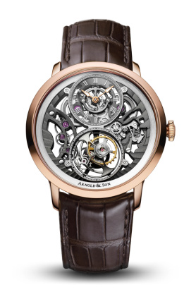 18世紀イギリスの名時計師ジョン・アーノルドの精神を受け継ぐ高級時計ブランドです。ジョン・アーノルドは、海洋航海に欠かせないマリンクロノメーターの開発で名を馳せ、精度の高い時計製作において歴史的な功績を残しました。その伝統を背景に、アーノルド&サンは現在スイスで時計製造を行い、自社開発ムーブメントを多数擁するマニュファクチュールブランドとして知られています。 左右対称の美しいレイアウトや立体的なムーブメント構造を特徴とし、精密な機械式時計の魅力をダイナミックに表現しています。また、トゥールビヨンや複雑機構を備えたモデルに加え、天体の動きを表現するムーンフェイズなど、科学や天文学に着想を得た独創的なデザインも魅力の一つです。 歴史的なクロノメーター製作の精神と、現代的な技術とデザインを融合させたアーノルド&サンは、機械式時計の芸術性と精密さを体現するブランドとして世界中の愛好家から支持されています。