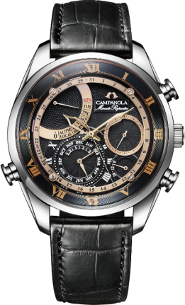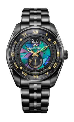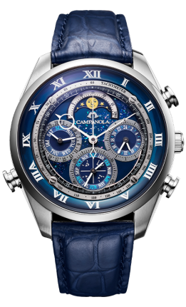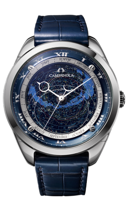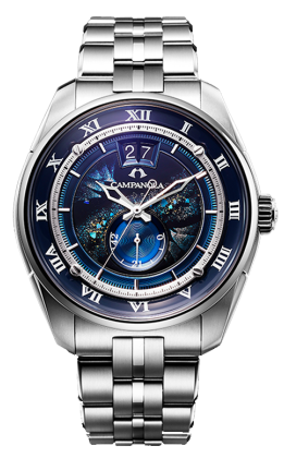 時の奥深い愉しみへ。 太古の昔、人間は、太陽の出没や月の満ち欠け、 星の動きで時間を感じとっていた。 やがて地球が太陽を一周する時間を1年、 地球が一回転する時間を1日とする時の単位が生まれた。 そして1週間の曜日には、太陽系の星の名前が与えられた。 時とは、天空の動きに他ならない。 永遠の時を閉じこめる時計は、果てしなくひろがる宇宙を 手の中に収める存在でもあるのだ。 時を愉しむ。その奥深い世界へ、ようこそ。 他のどこにもない唯一無二の時計、 カンパノラをあなたの腕に。
